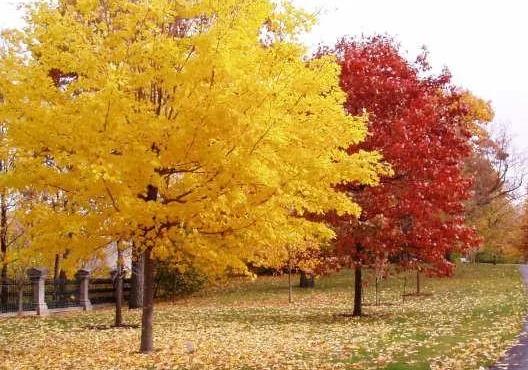 以疏林草地式配置為例,綠色草坪、白色的護欄為背景,大型喬木銀杏、美國紅楓等相間配置,夏季樹木、草坪深深淺淺的綠色,雖無花朵,也感到清新宜人。秋季銀杏、紅楓葉色鮮艷,與綠色的草坪交相輝映,形成一片既壯觀又協(xié)調(diào)的全新園林景觀,給人帶來無盡享受。